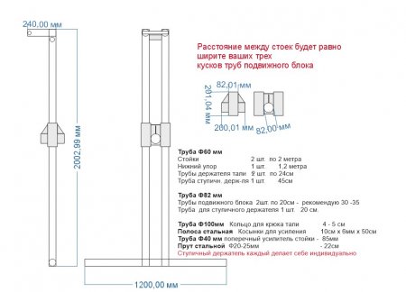 Чтобы я здесь изменил. Вертикальные трубы подвижного блока можно увеличить с 20 ти до 30ти сантиметров.